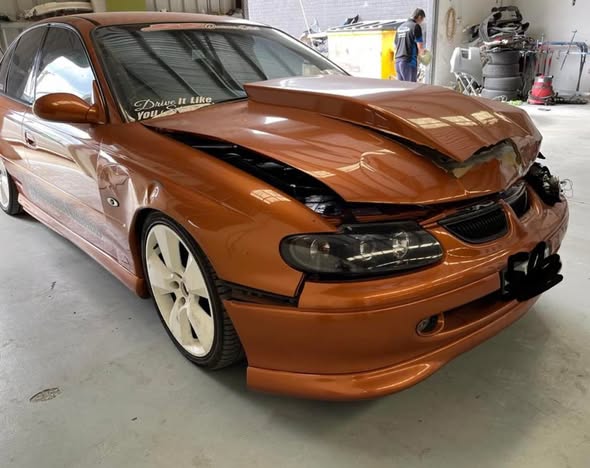 This is one of them — a custom bronze Holden Commodore VX that came into our North Geelong workshop with front-end damage so severe it looked like a write-off candidate. It left looking better than it did before the accident.